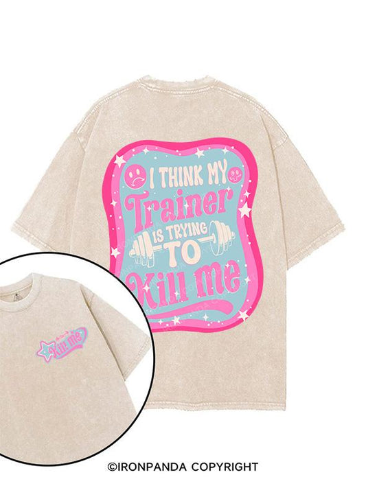 I THINK MY TRAINER IS TRYING TO KILL ME printed Gym Shirt