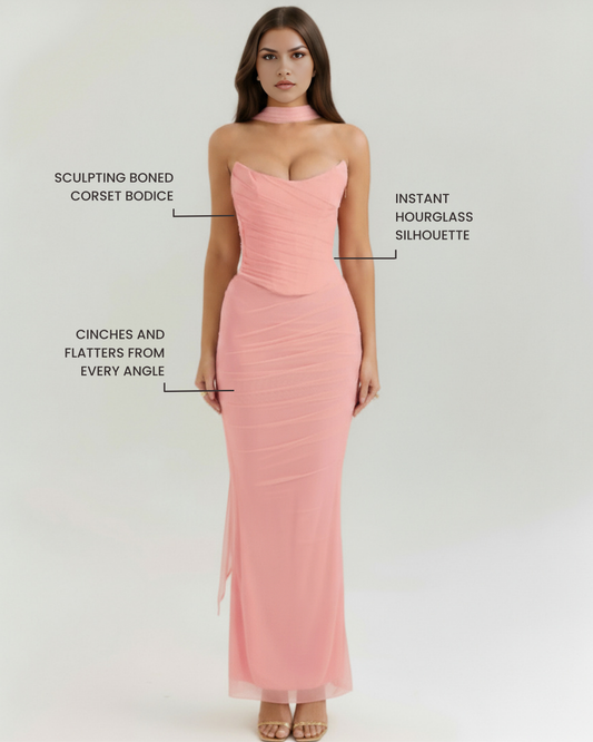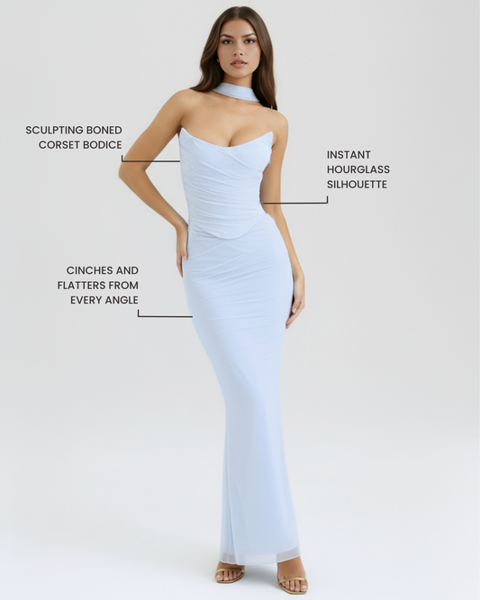 Backless Deep V Halter Lace Waist Satin Maxi Dress