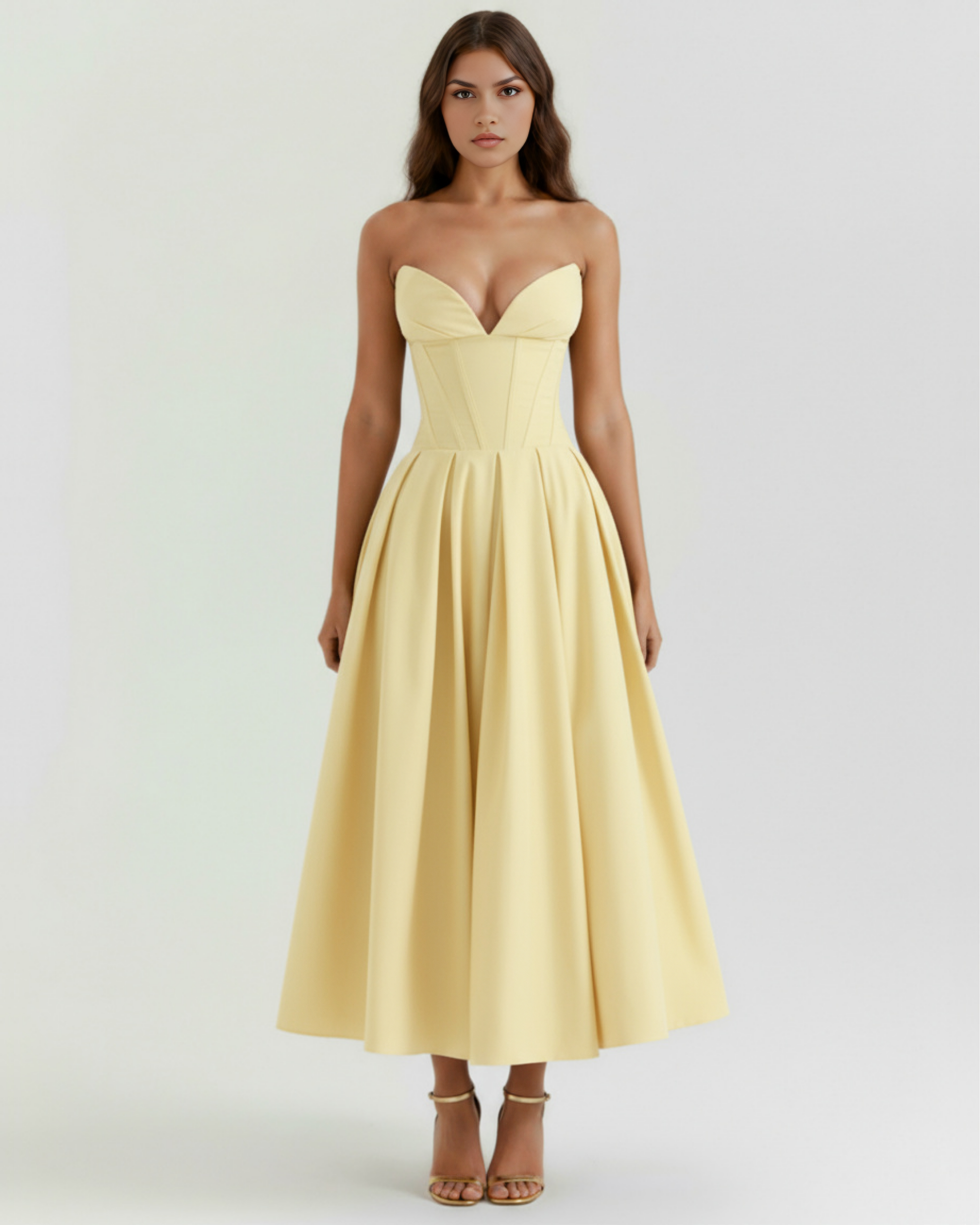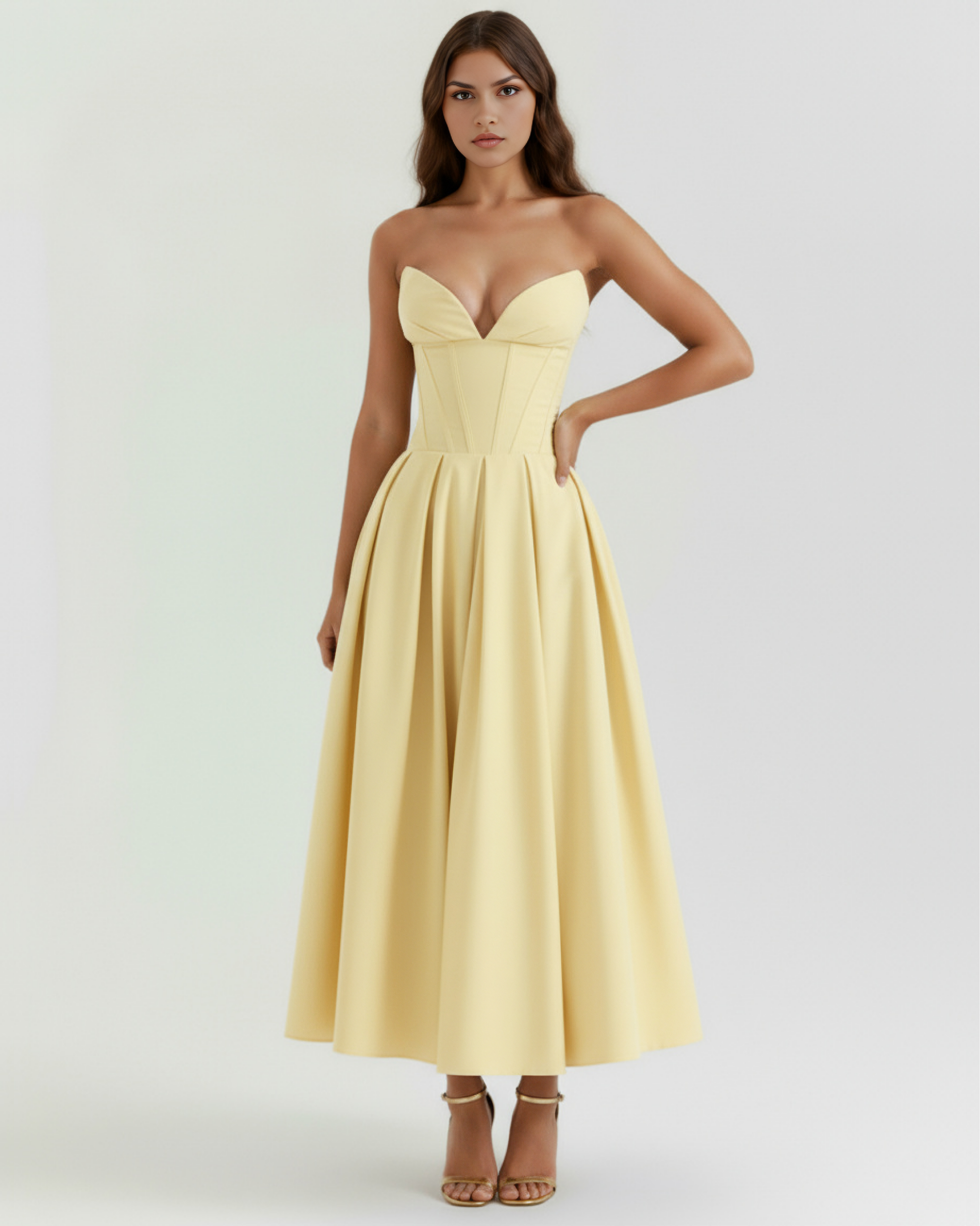 Our 'Amalfi' is simply THE dress for your special occasions this season. Feminine, chic, truly an icon. The architectural sculpted bodice is perfectly boned to cinch your waist and contrasted by the full, feminine, voluminous skirt.