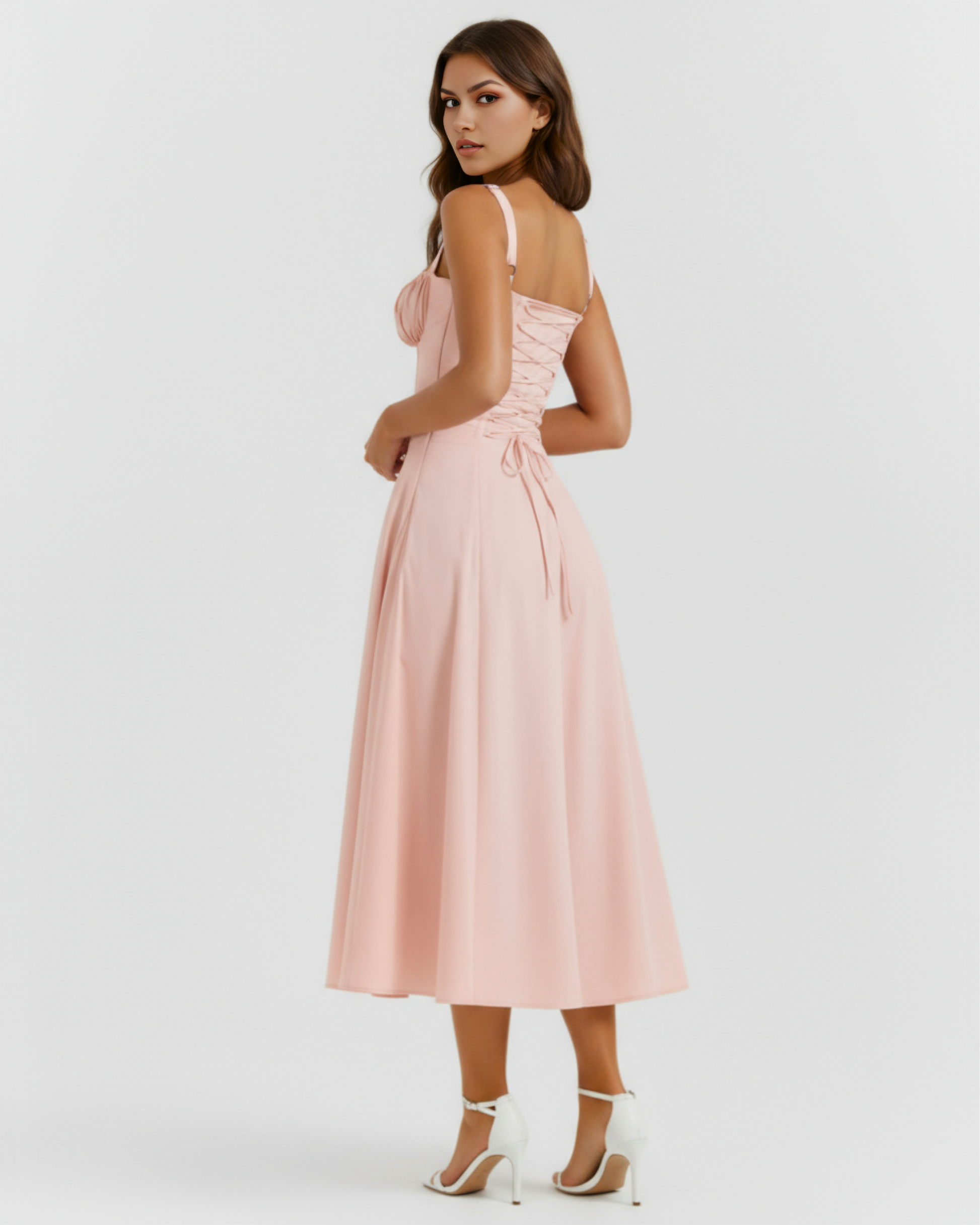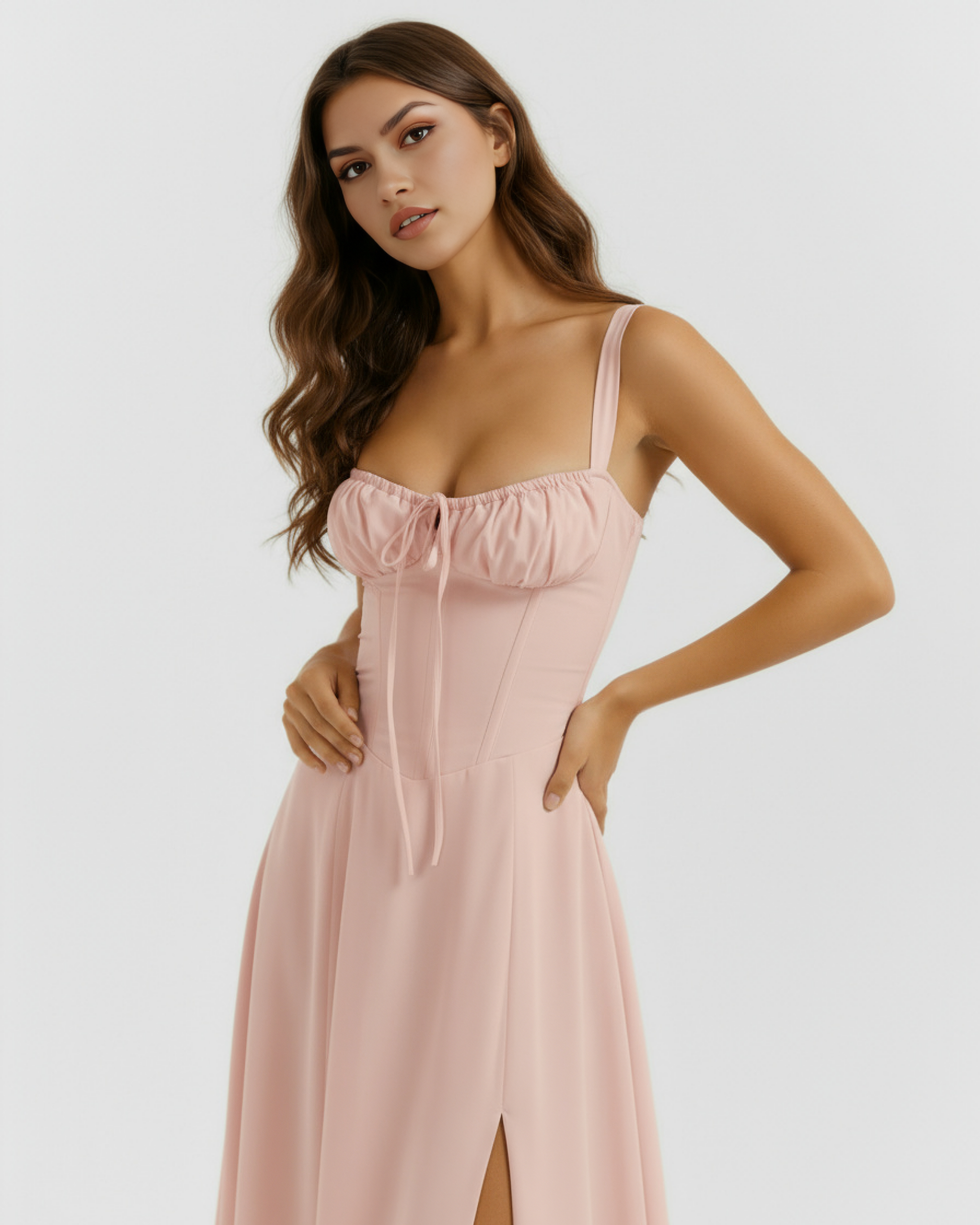 You'll feel ultra feminine in our 'Aurora' dress that's the perfect match for spring and summer garden parties. It's cut from stretch cotton in a gorgeous rosé hue and has a corseted bodice to cinch the fit with a beautiful lace up back. The gathered bust has a drawstring tie and the side split adds a little sexiness to reveal a flash of leg.